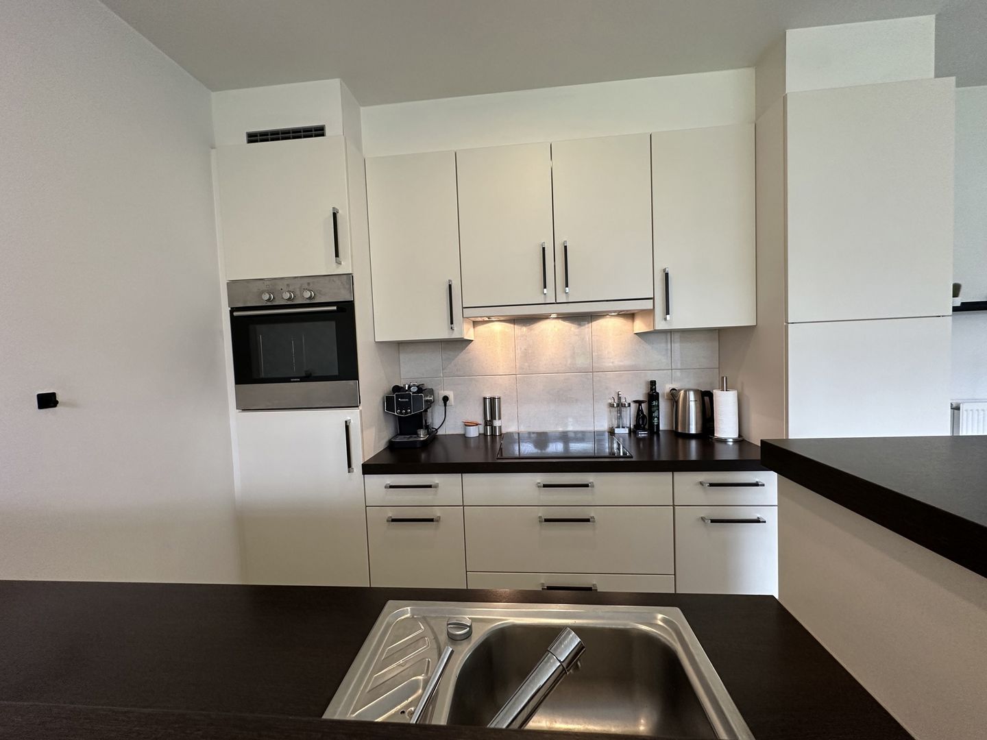 Het appartement heeft een ruime living met veel lichtinval een volledig uitgeruste keuken.
