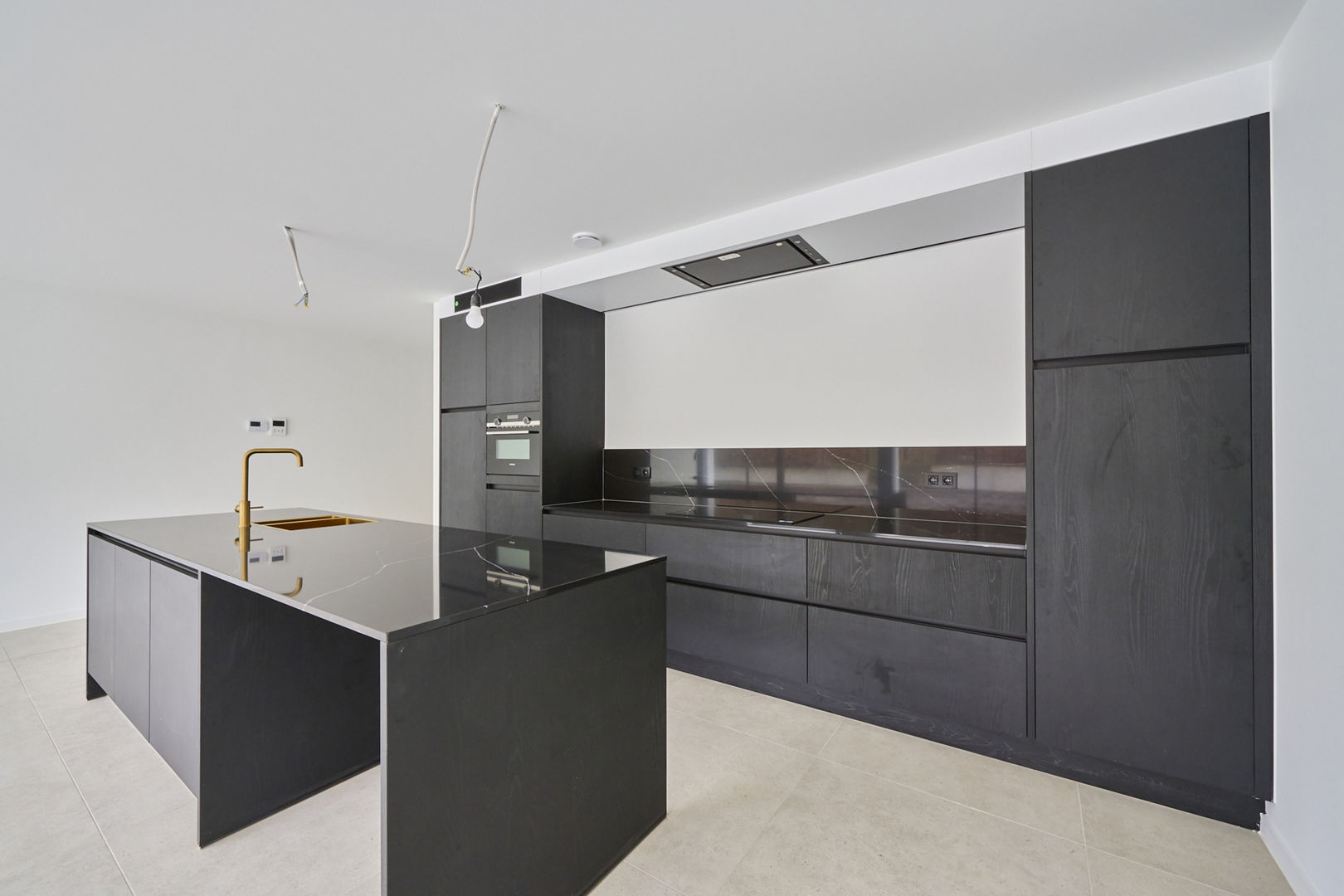 Ruime inkomhal met toegang tot het apart toilet, ruimte voorzien voor het plaatsen van een vestiaire en bergplaats. Dubbele glazen deur naar de riante leefruimte van om en bij de 50m². Moderne, greeploze keuken voorzien van de nodige inbouwtoestellen (kookplaat met dampkap, vaatwasser, oven, koelkast, aparte vriezer, spoelbak) en eiland met ontbijthoek. De plafondhoge ramen zorgen voor massa's lichtinval en toegang tot de terrassen en de privé-tuin. Nachthal met toegang tot de badkamer met dubbele lavabo, ligbad en inloopdouche. Er zijn 2 ruime slaapkamers en een 3de ruimte die uitermate geschikt is als bureel of hobbykamer.