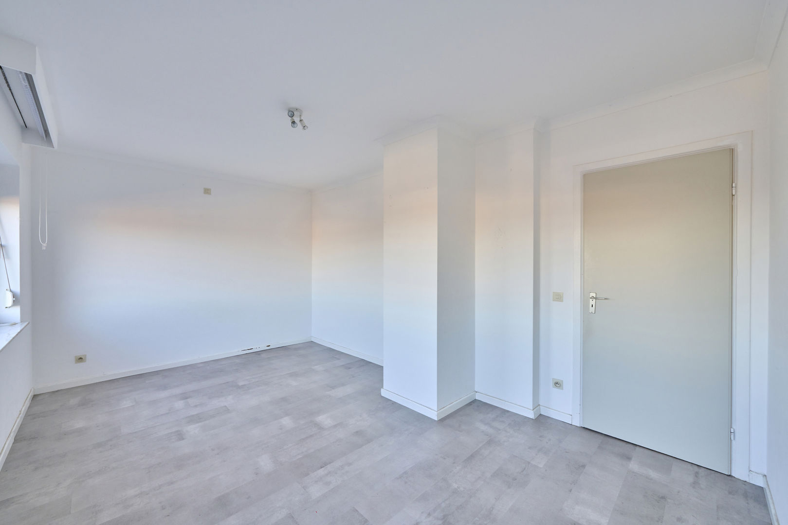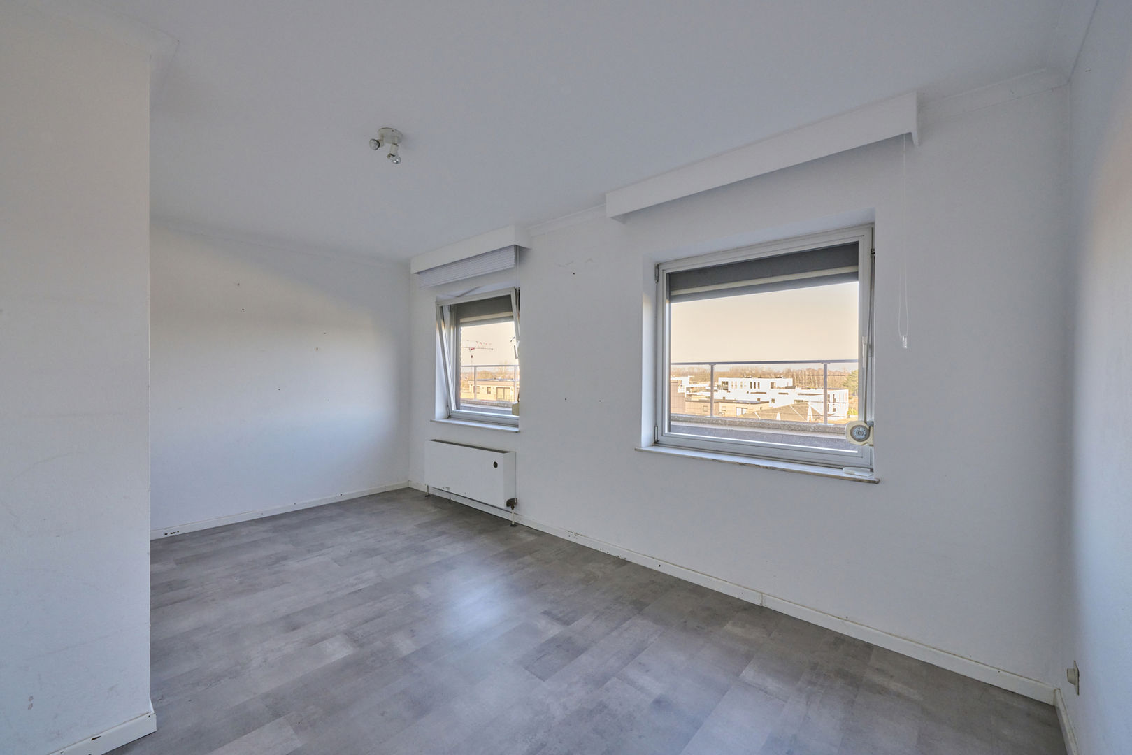 De lift brengt ons op de 5de verdieping van dit gebouw waarbij we via de inkomhal terechtkomen in een ruime zeer open en lichtrijke leefruimte. Deze ruimte geeft toegang tot het eerste terras met een mooi en ver zicht via een schuifraam. Naast de leefruimte vinden we de ingerichte keuken waarbij we het 2de terras kunnen betreden, ook hier een prachtig zicht op de binnenstad in alle rust. Het appartement beschikt over 1 ruime slaapkamer met zeer veel lichtval voorzien van rolluiken aan beide ramen, een badkamer met bad en lavabo en een apart toilet vervolledigen dit appartement.
