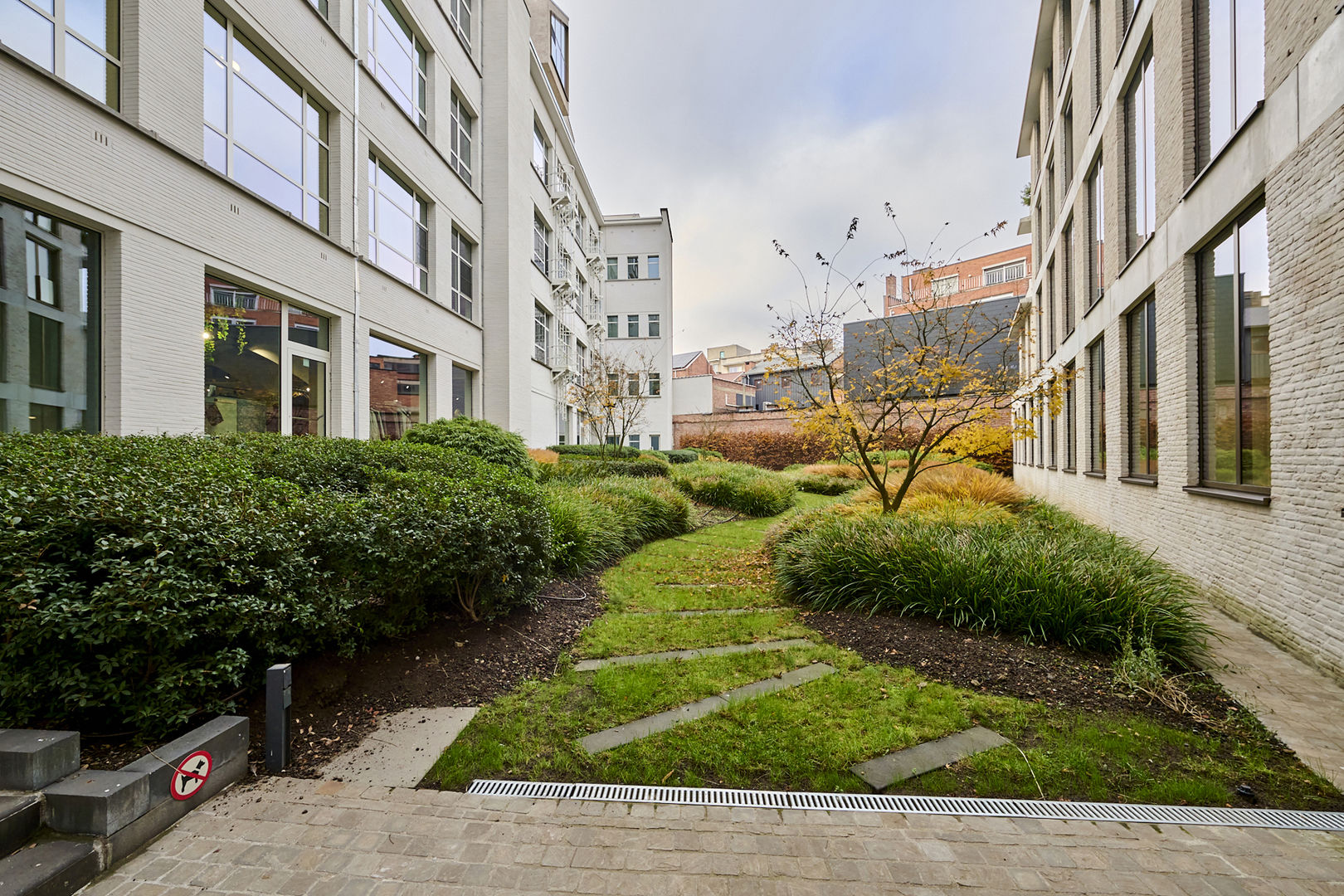 Tussen de gebouwen van De Bonnefant is een groene doorsteek gecreëerd die de Demerstraat rechtstreeks verbindt met het begijnhof. Gezellig vertoeven in één van de twee gemeenschappelijke binnentuinen of liever een barbecue met de buren? Bovendien hebben de terrassen geïntegreerde plantenbakken die zijn uitgerust met een automatisch beregeningssysteem. Een extra groene beleving is verzekerd.