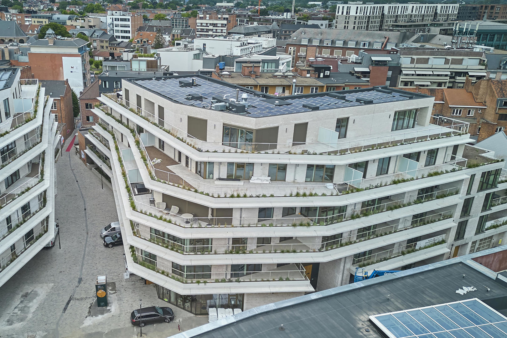 De appartementen bevatten 1, 2 of 3 slaapkamers met mooie terrassen omgeven door groen dankzij de geïntegreerde plantenbakken. Verder beschikken ze over 1 of 2 badkamers.