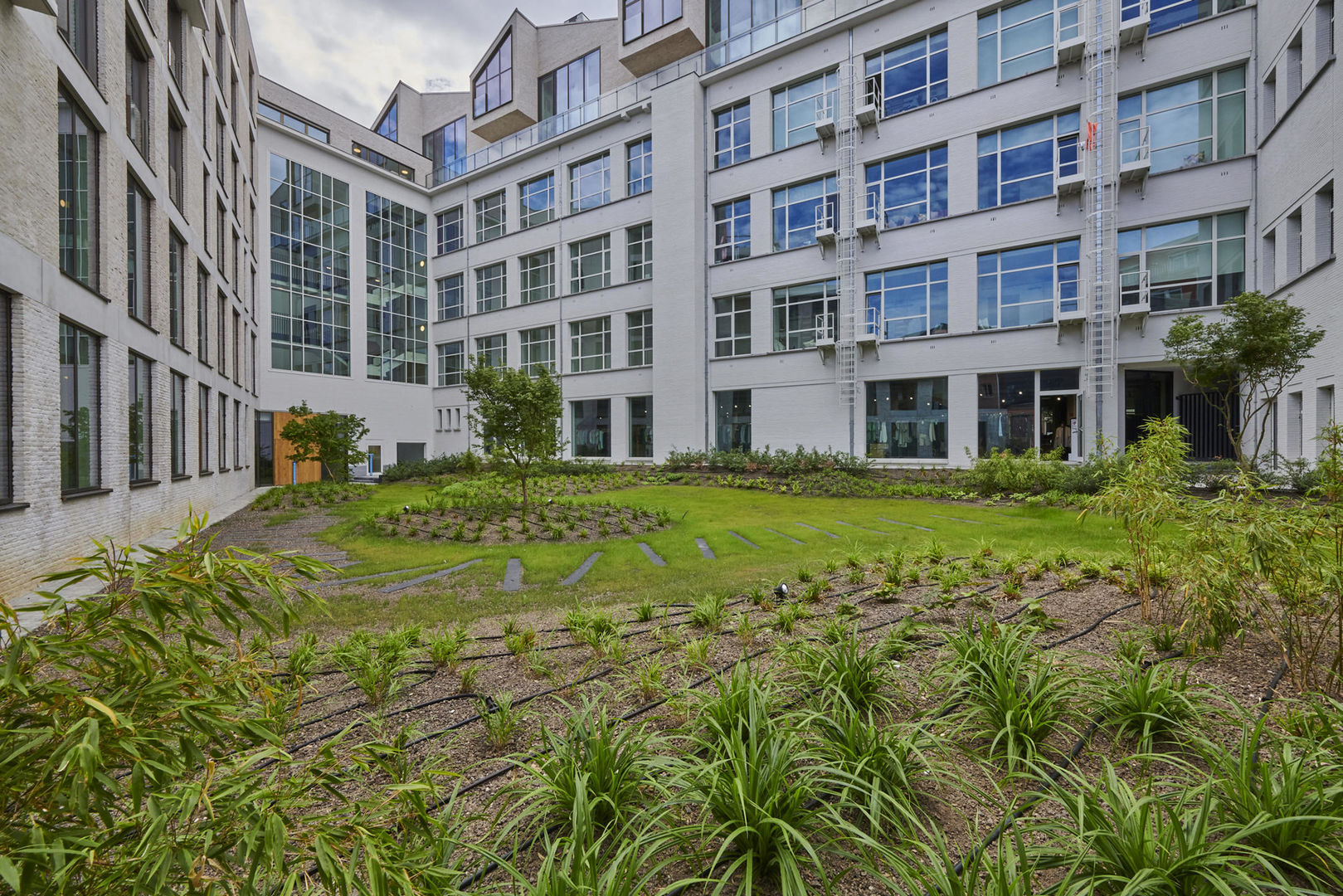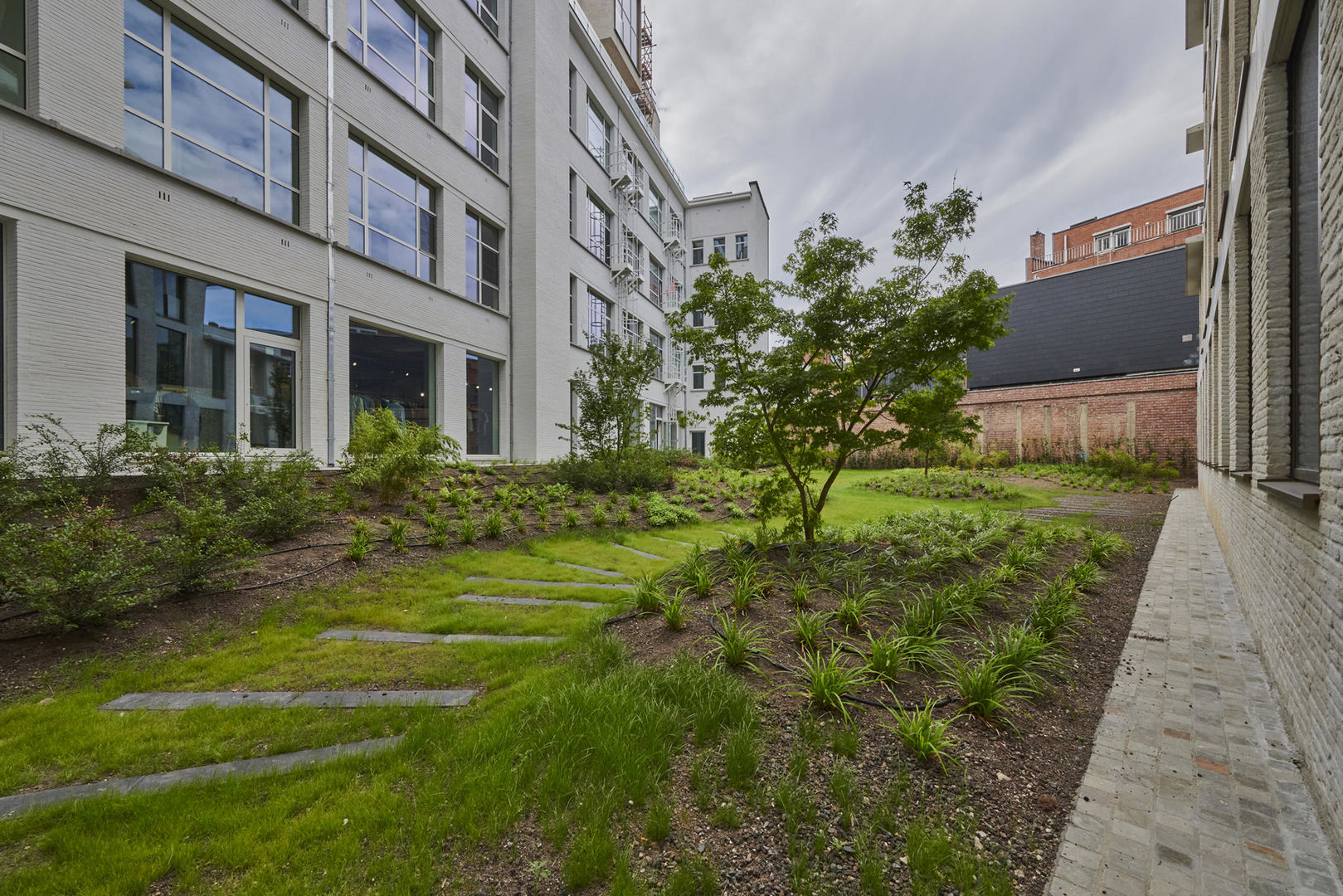 Tussen de gebouwen van De Bonnefant is een groene doorsteek gecreëerd die de Demerstraat rechtstreeks verbindt met het begijnhof. Gezellig vertoeven in één van de twee gemeenschappelijke binnentuinen of liever een barbecue met de buren? Bovendien hebben de terrassen geïntegreerde plantenbakken die zijn uitgerust met een automatisch beregeningssysteem. Een extra groene beleving is verzekerd.