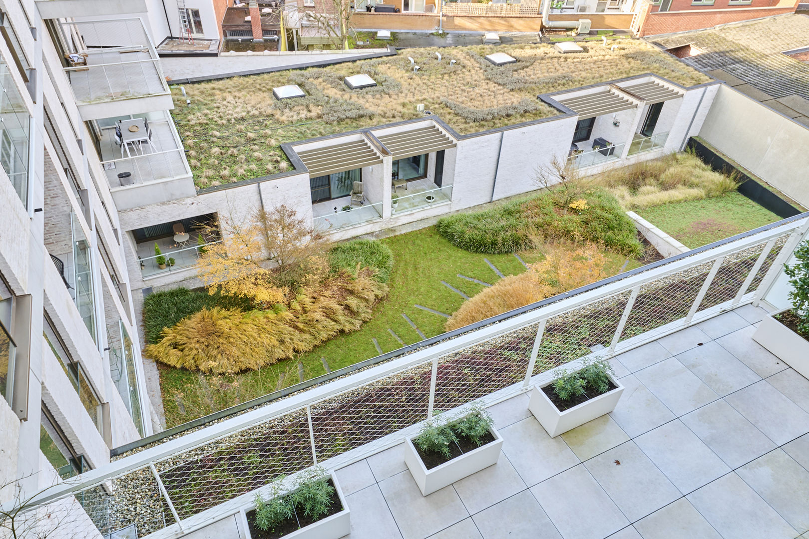Tussen de gebouwen van De Bonnefant is een groene doorsteek gecreëerd die de Demerstraat rechtstreeks verbindt met het begijnhof. Gezellig vertoeven in één van de twee gemeenschappelijke binnentuinen of liever een barbecue met de buren? Bovendien hebben de terrassen geïntegreerde plantenbakken die zijn uitgerust met een automatisch beregeningssysteem. Een extra groene beleving is verzekerd.