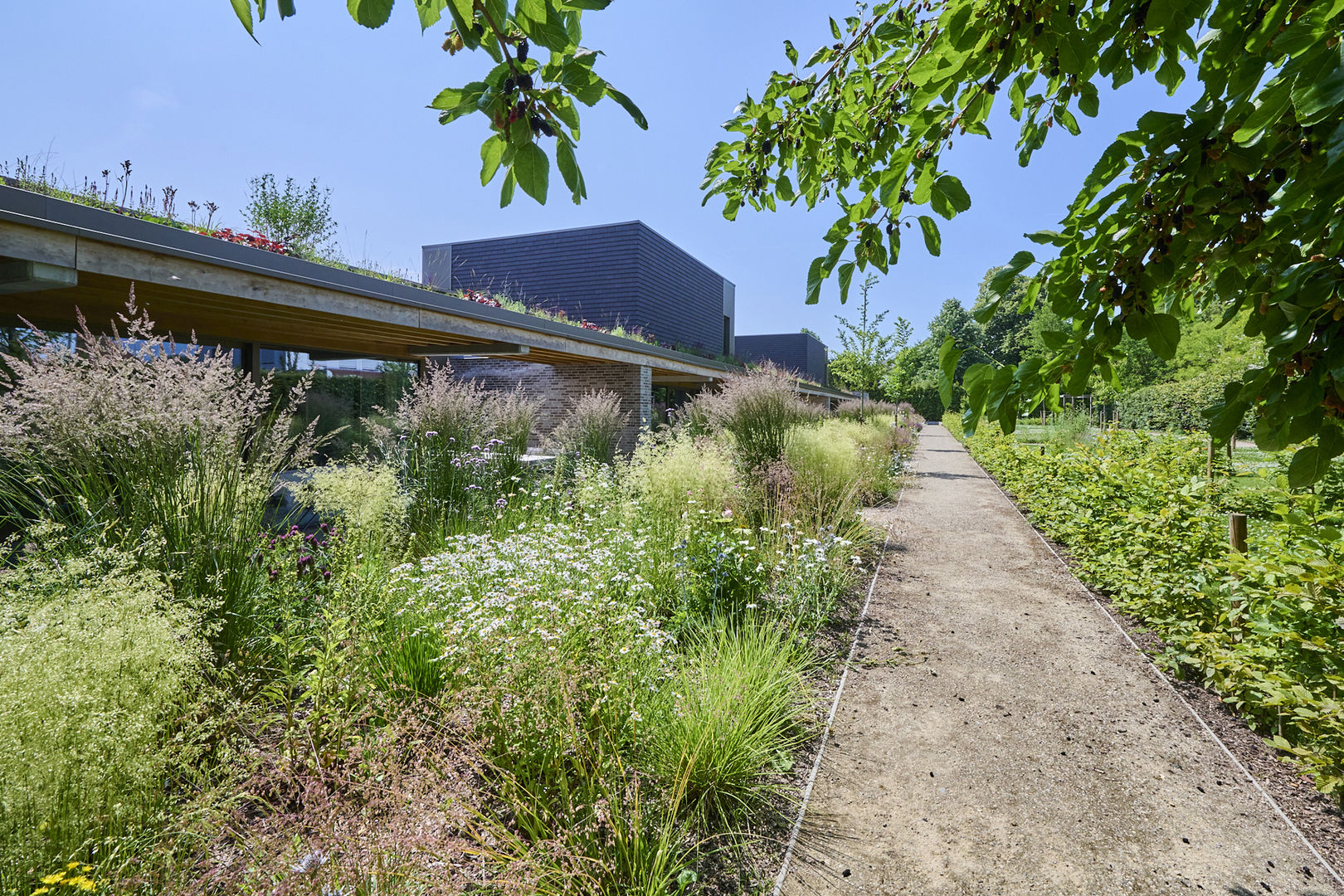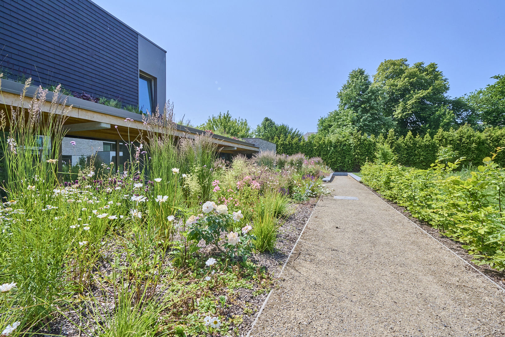 - glaspartijen met connectie naar het terras (plafonds+vloeren worden doorgetrokken)