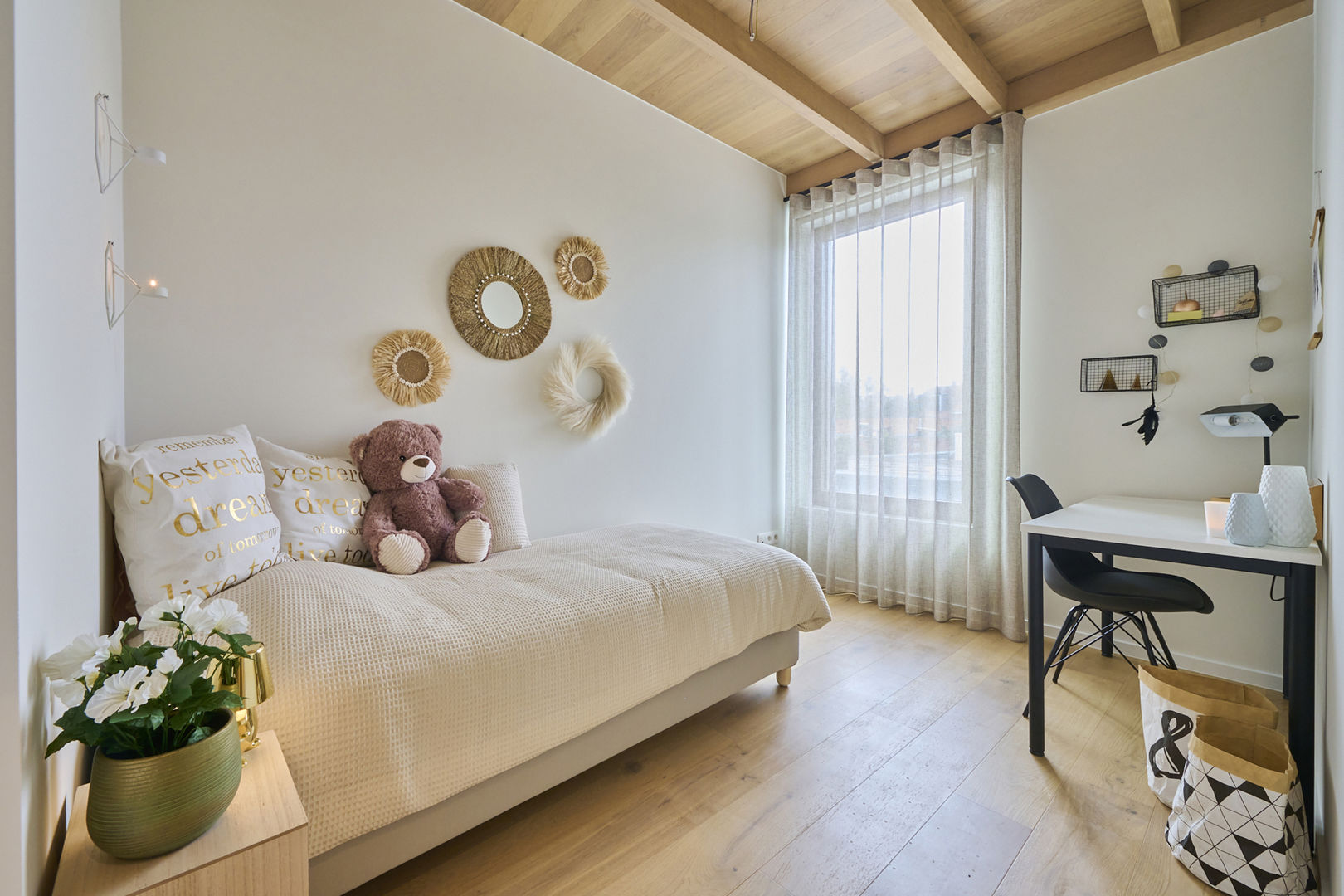 - 3 slaapkamers waarvan 1 gelijkvloers - mogelijkheid voor een 4e slaapkamer op de verdieping i.p.v. de vide (zie variant plan)