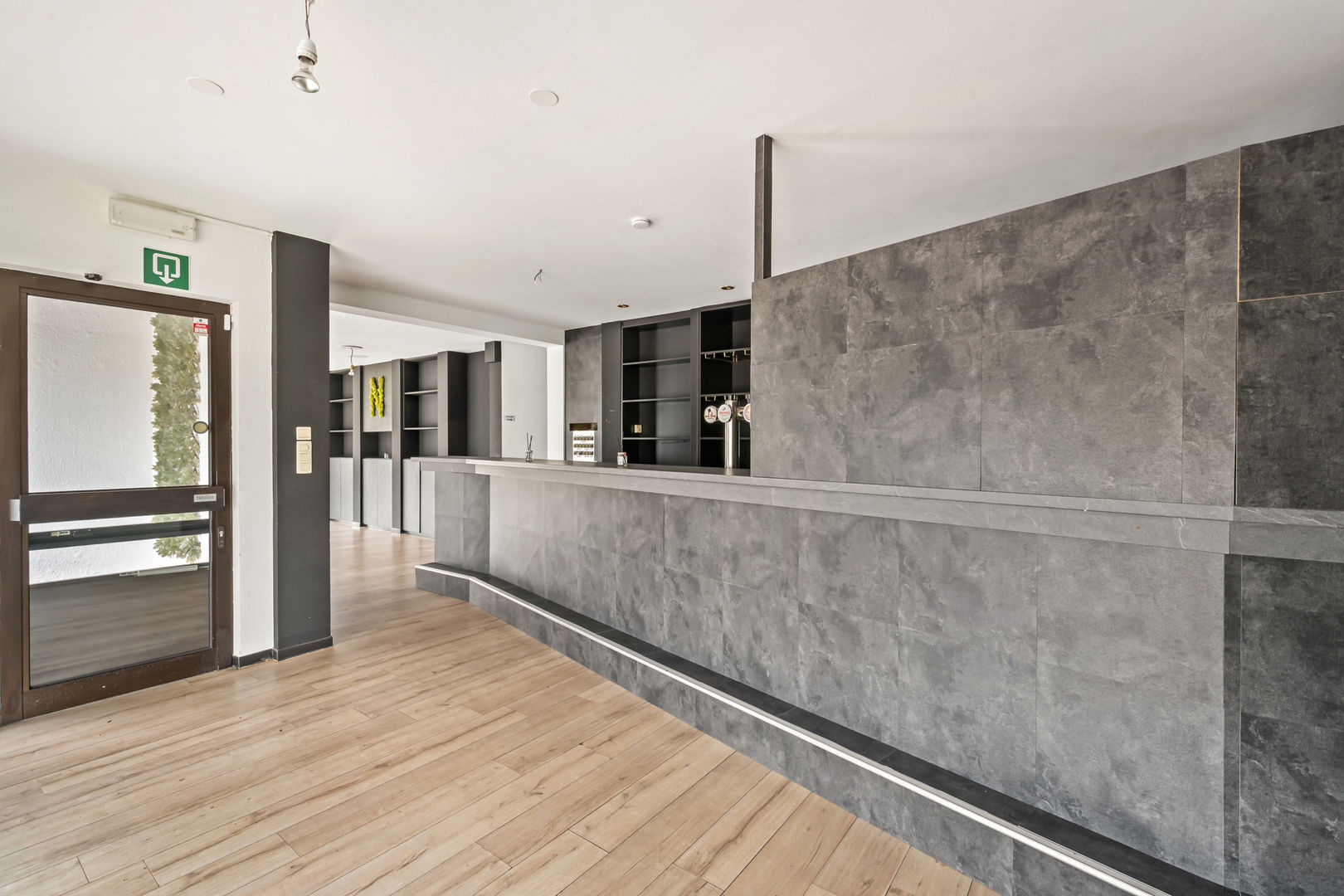 Voormalige brasserie: De handelsruimte heeft een oppervlakte van 118 m². Er is een ontvangst- en toogruimte met aansluitend de verbruikszaal en aparte keuken. Tussen het tooggedeelte en de verbruikszaal bevindt zich het sanitair. Het handelspand is nog grotendeels ingericht. Aan de voorzijde zijn ruime parkeermogelijkheden voorzien. In combinatie met de uitstekende zichtbaarheid en vlotte passage vormt deze handelsruimte een sterke commerciële opportuniteit.