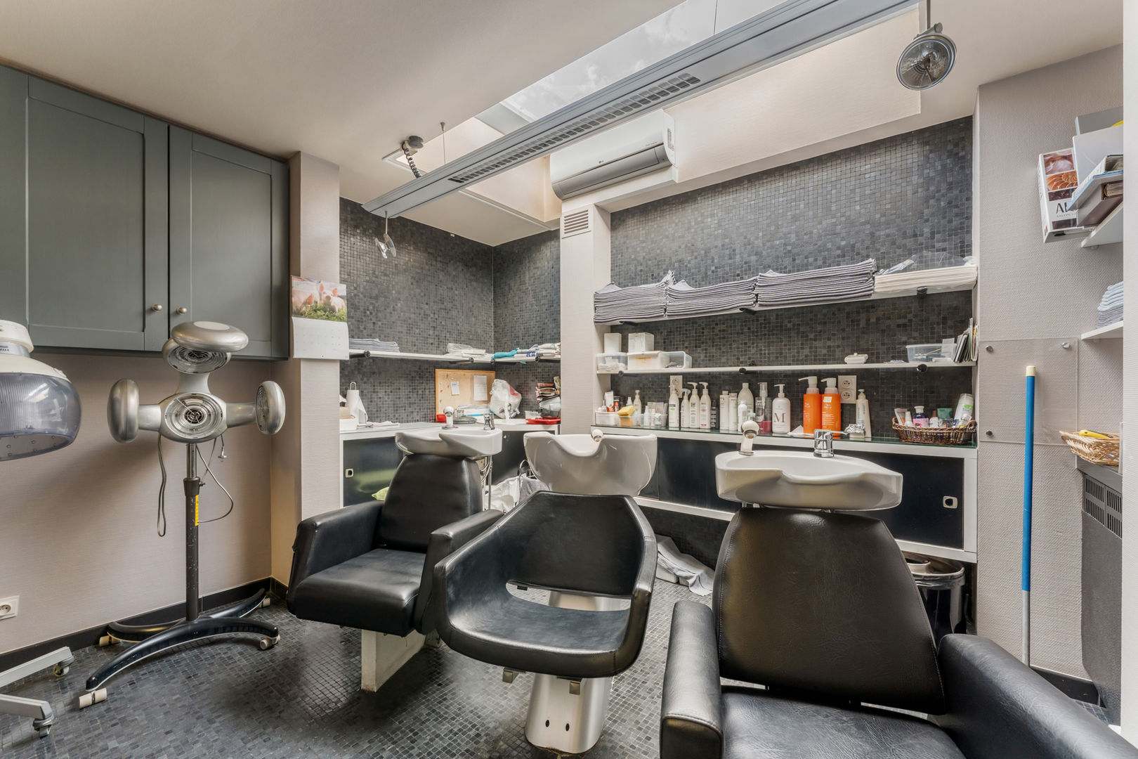 Verder is er nog een polyvalente ruimte die momenteel is ingericht als kapsalon met kitchenette. Een bijkomend pluspunt is de flexibele indeling hiervan. Een deel van het woongedeelte kan eenvoudig geïntegreerd worden in de voorgelegen handelsruimte dankzij een vlot verwijderbare tussenwand. Dit maakt de combinatie tussen privé en professioneel gebruik bijzonder praktisch.
