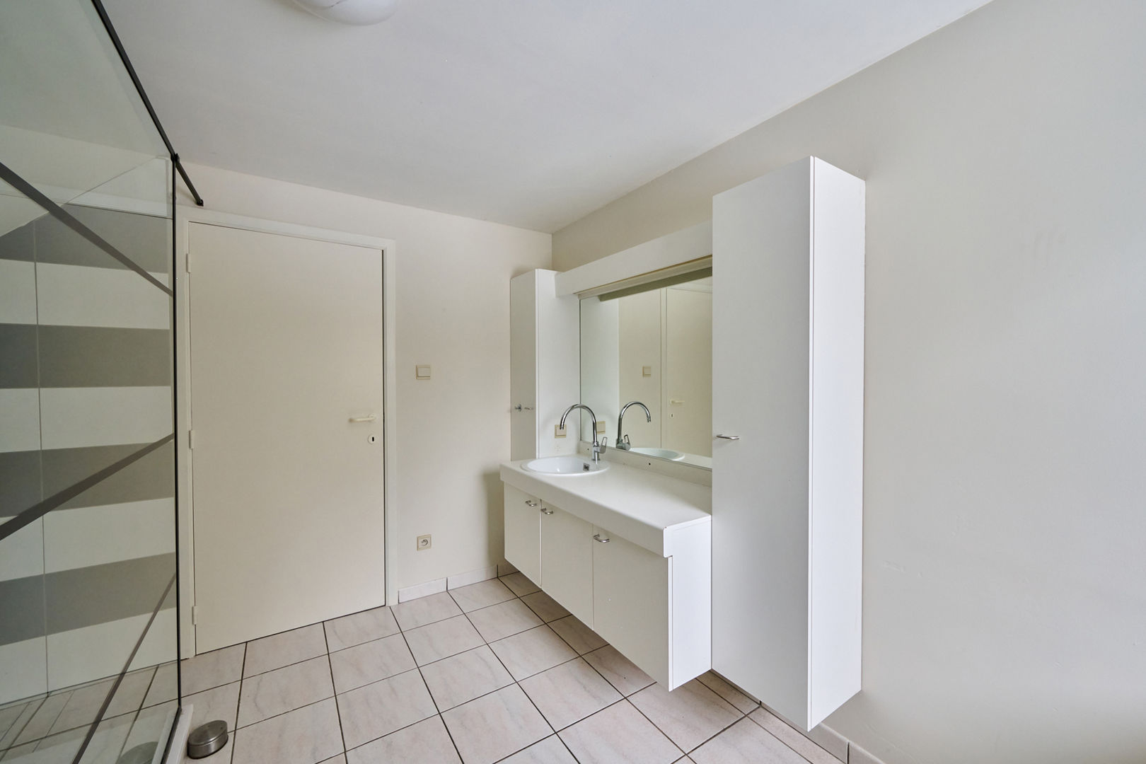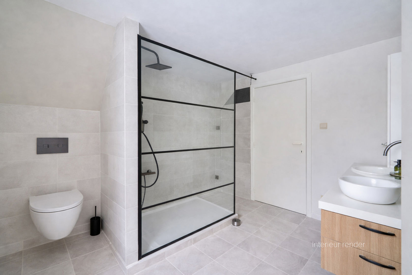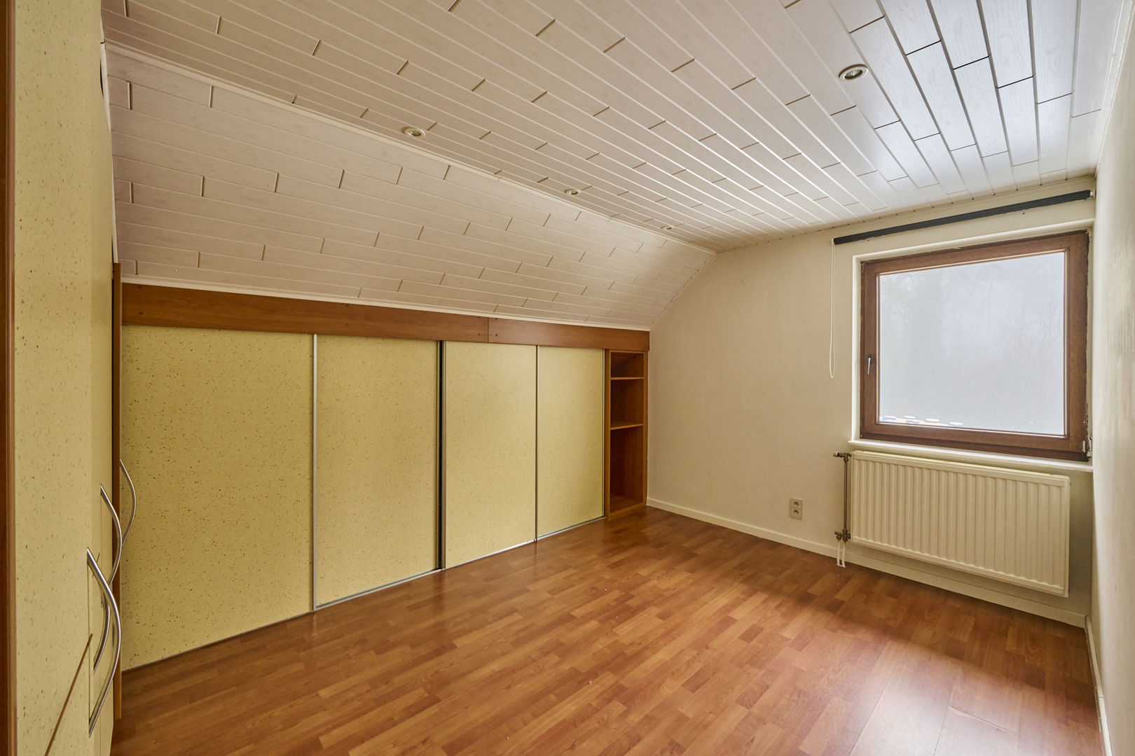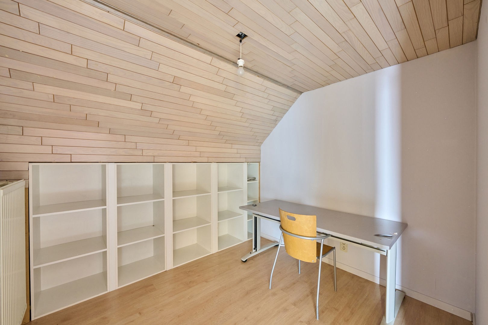 Verdiep: Nachthal met toegang tot de 3 zeer ruime slaapkamers van respectievelijk 28m², 24m² en 13m². Allen voorzien van tal van inbouwkasten. Verder is er nog een bureelruimte/bergruimte of dressing. Badkamer met grote inloopdouche, lavabo en toilet.