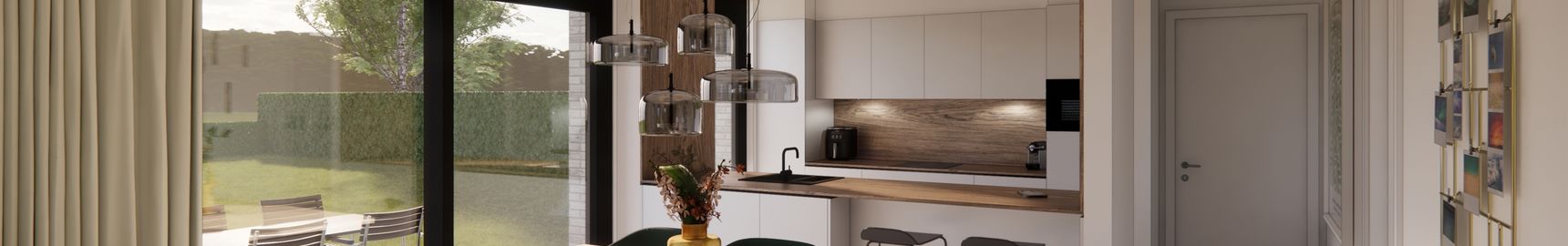 - leefruimte met veel lichtinval en open keuken