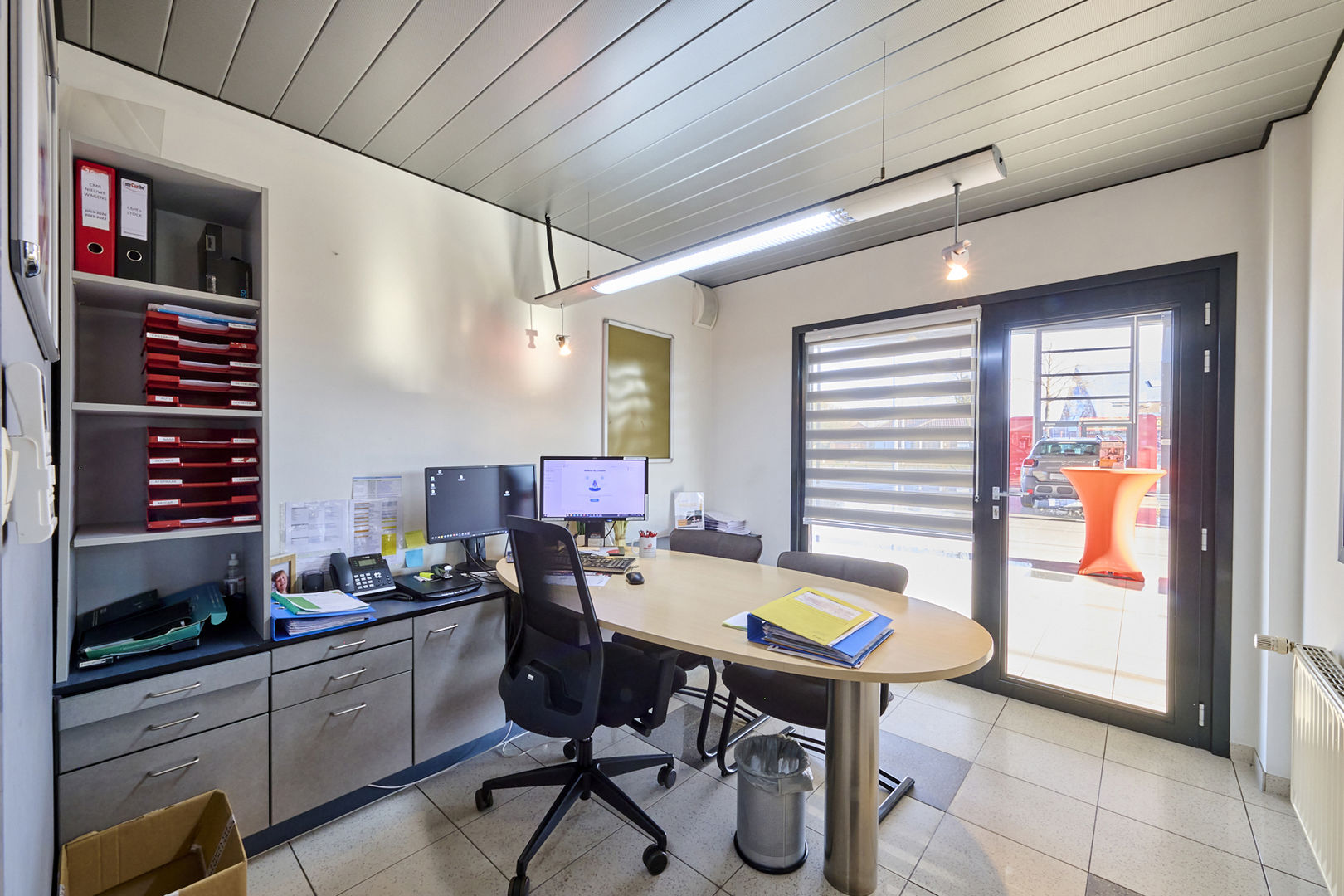 Deze handelsruimte met werkplaats/magazijn bevindt zich op een commerciële toplocatie in Maasmechelen. Op een perceel van ruim 6133m² aan de drukke Rijksweg ligt dit handelspand met een totale bruikbare oppervlakte van ruim 1500m². Het gebouw bestaat uit een toonzaal van 550m² (bj 2000) met bijhorende werkplaats/magazijnen en kantoren (bj 1984/2000). Ruime parkeergelegenheid aan het gebouw.