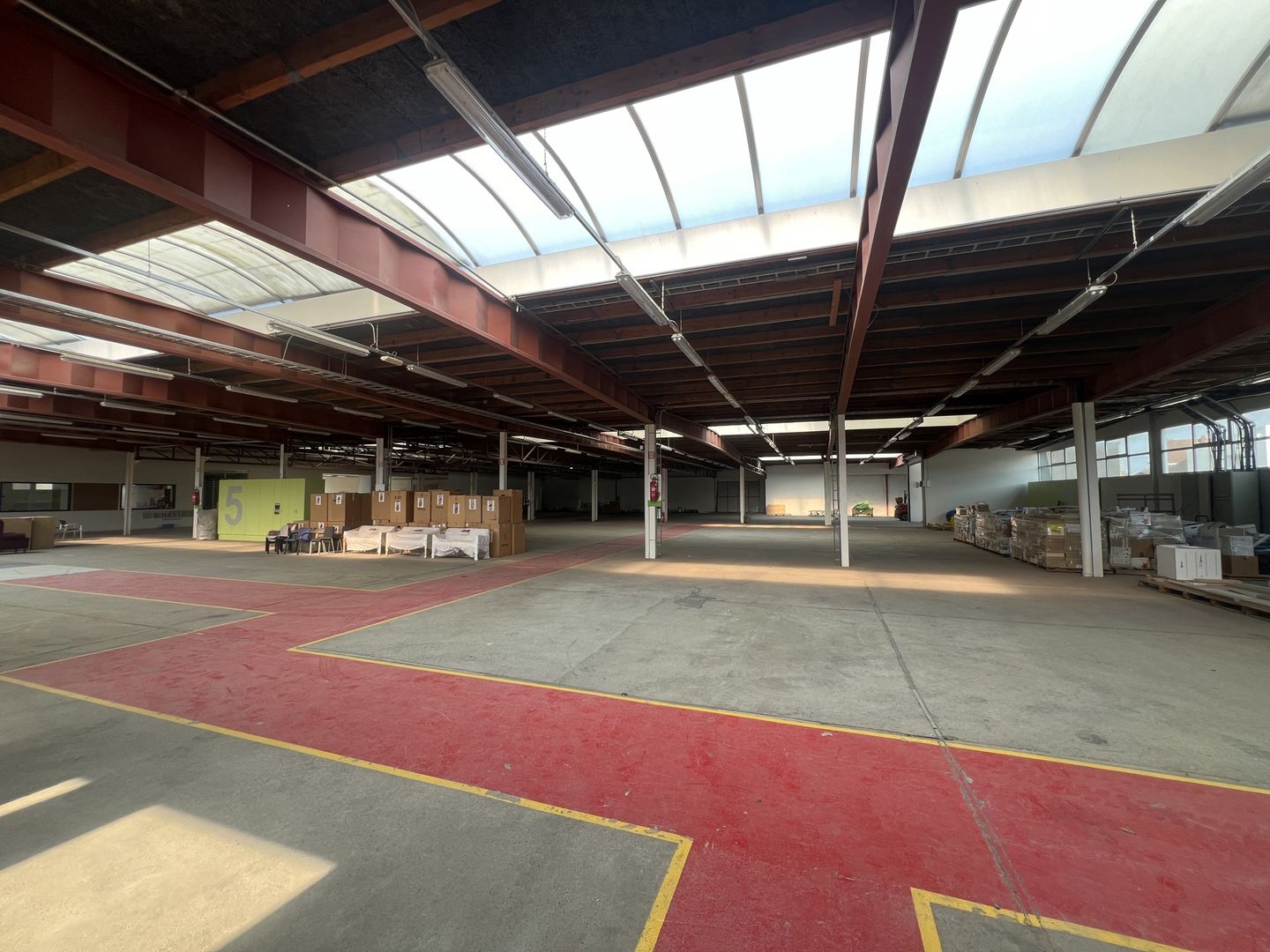 - staalconstructie, geïsoleerd dak, lichtstraten en zijdelingse ramen