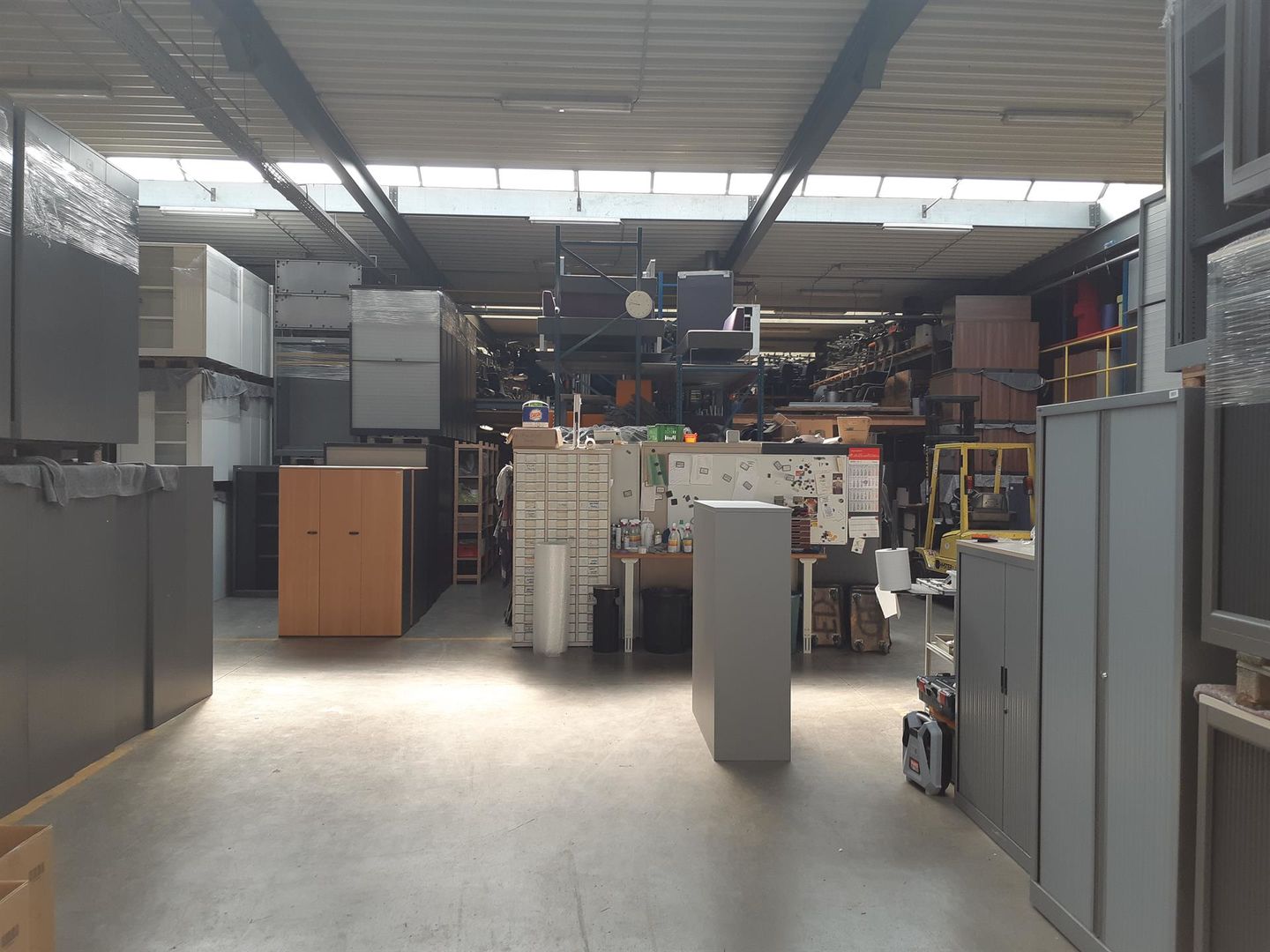 - oppervlakte magazijn: 1600m² met werkplaatskantoren en sanitair (100m²)