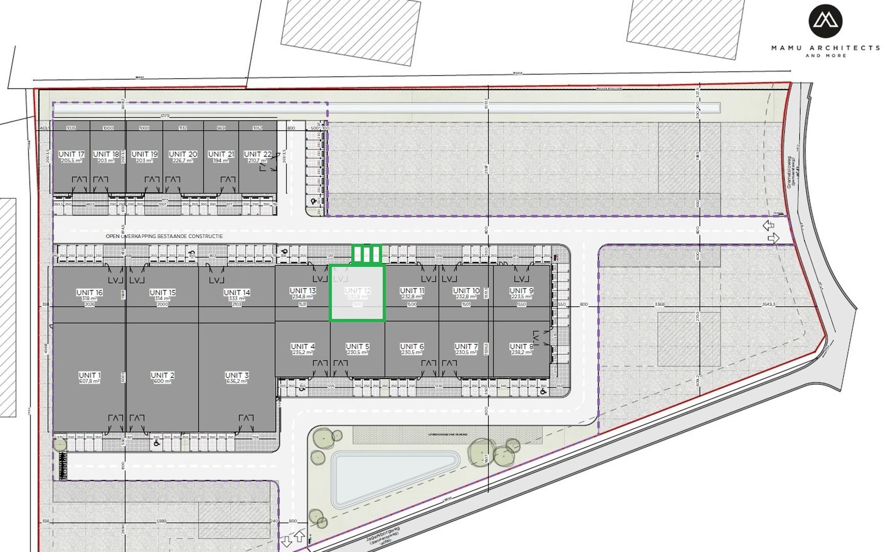 De site is voorzien van mooie bedrijfsunits met diverse oppervlakte.