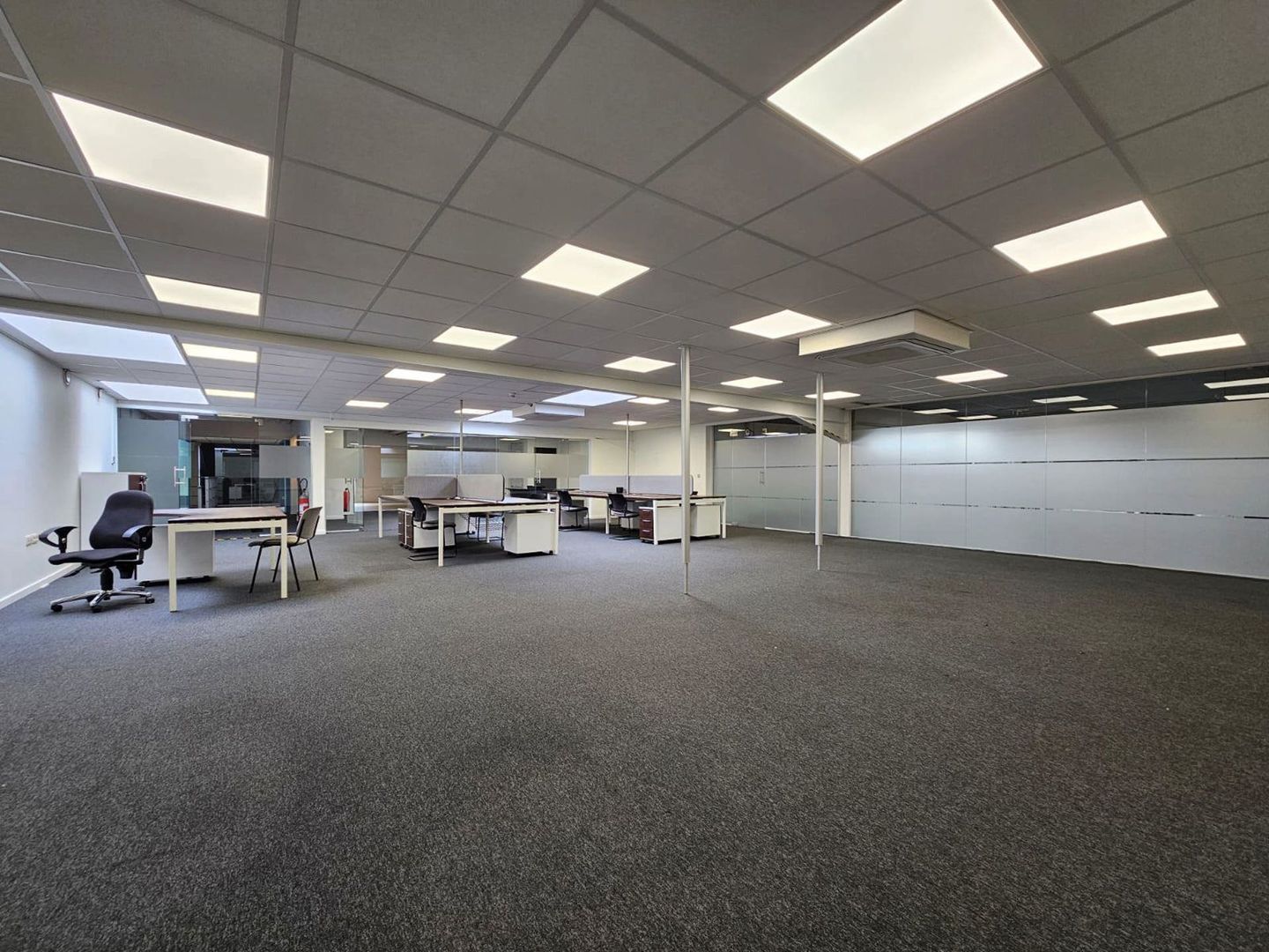Het ruime bedrijfspand beschikt op de gelijkvloers over volgende ruimtes: