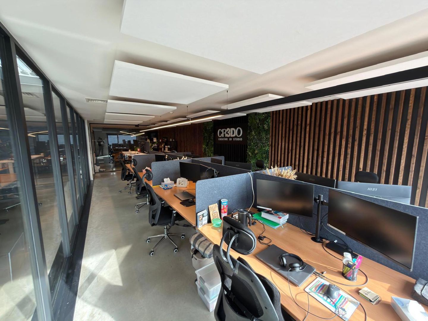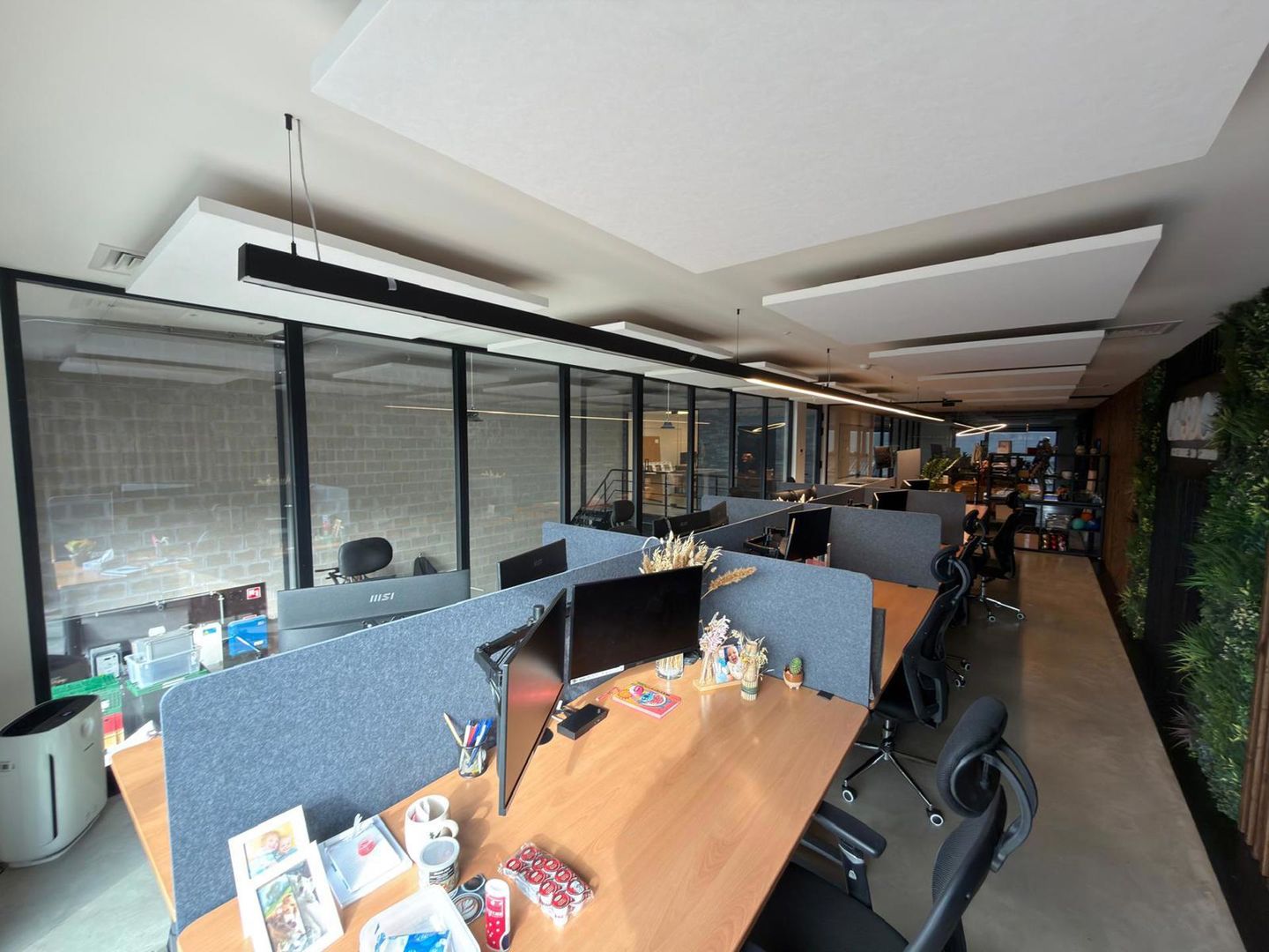 De vloeroppervlakte van de hal bedraagt 160m². Er is een mezzanine aanwezig van 112m² met prachtig landschapskantoor, afzonderlijk bureel, keuken & sanitair. Alle comfort is aanwezig en de afwerking is meer dan proper.