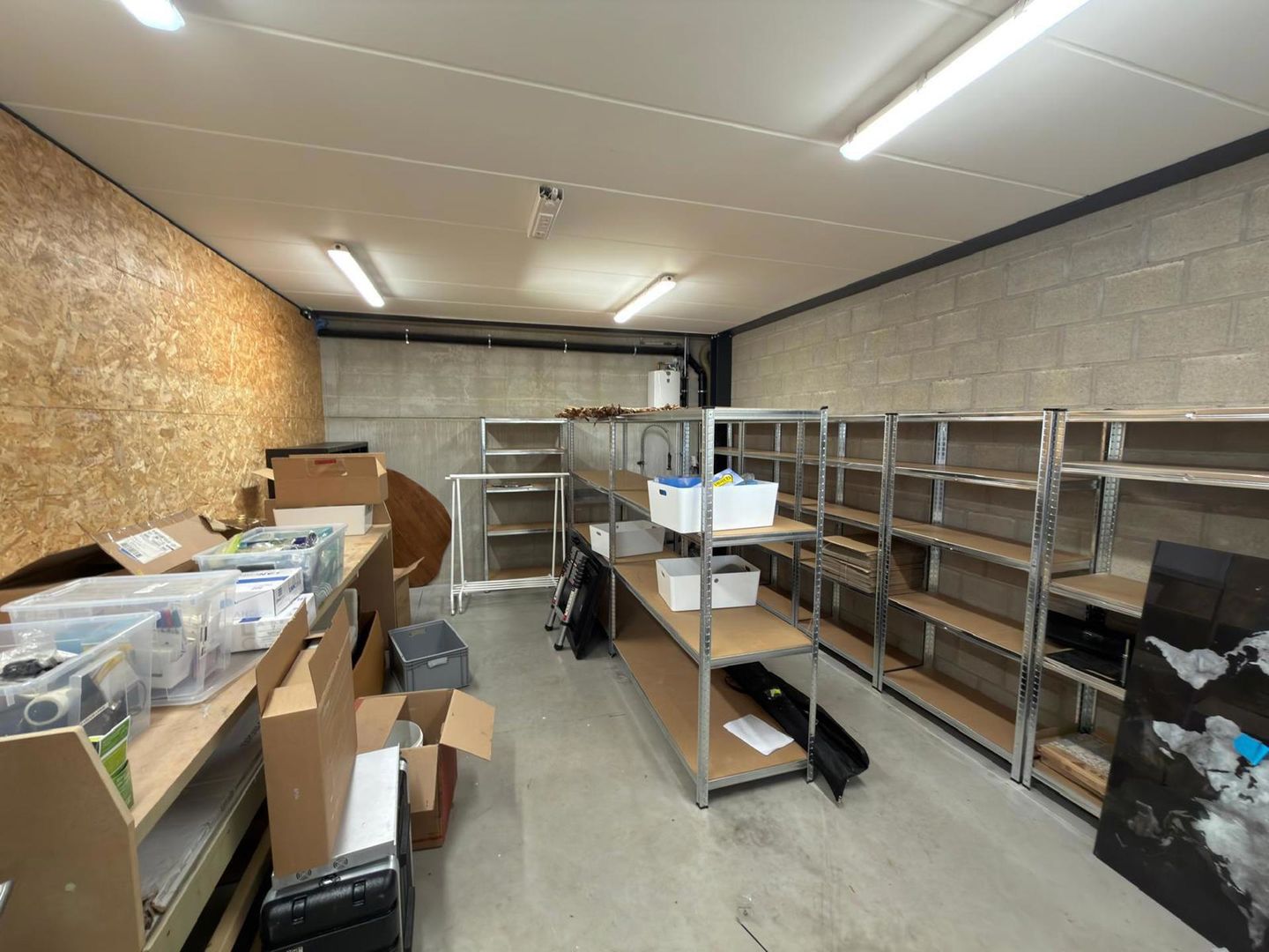 Het gebouw is opgetrokken in een staal- en betonconstructie, voorzien van: lichtstraat met geïntegreerd rookluik, gepolierde betonvloer met een draagkracht van 2T/m², verwarming en een automatische sectionaalpoort van +/- 4m x 4,5m.