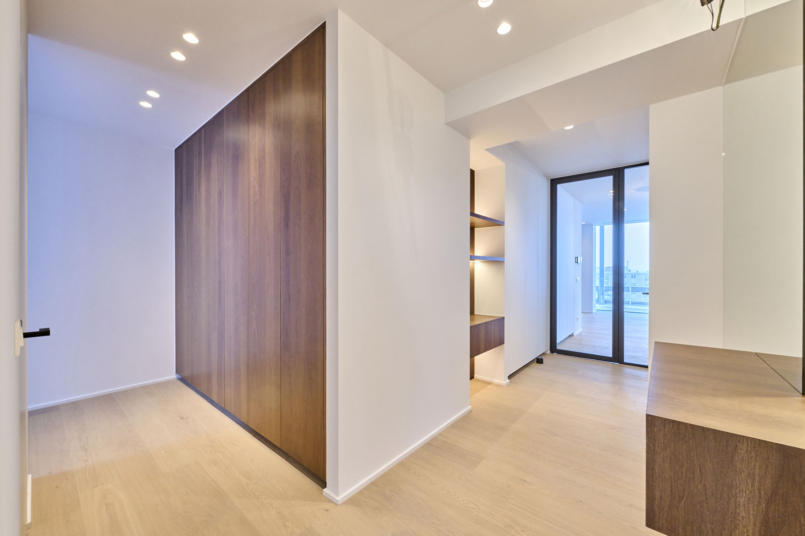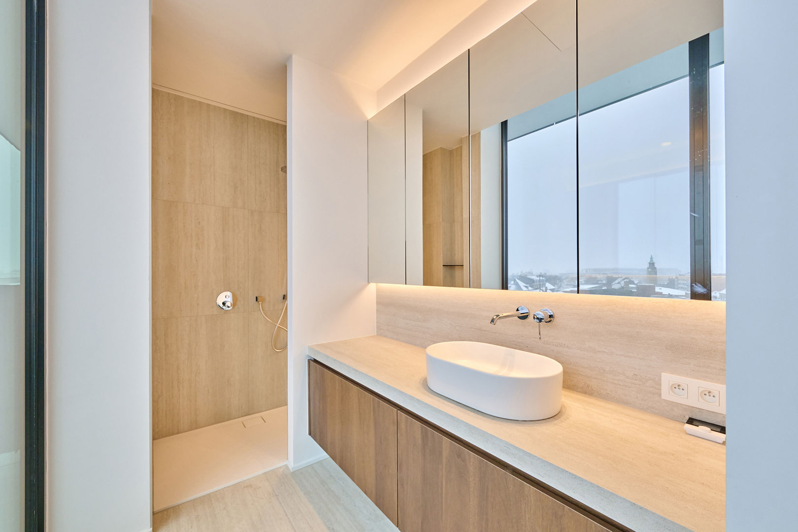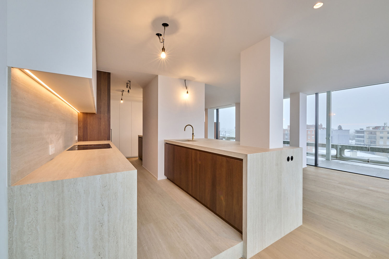Het penthouse biedt een adembenemend uitzicht over de skyline van Hasselt en werd afgewerkt met maatwerkmeubilair, met zorg gedesigned door In-Lijn Architecten. Dit penthouse heeft een prachtig zicht op de zonsondergang, en geniet van warm en overvloedig licht in het bijzonder tijdens de avonduurtjes. Naast de ondergrondse parkeerplaats is er een afgesloten fietsenberging en kelderberging.